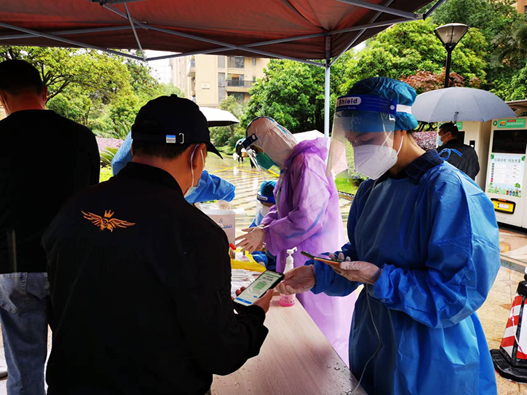 管控小區(qū)中,此刻白衣作戰(zhàn)袍集結(jié)于此!在小區(qū)尋求業(yè)主幫助的時(shí)候,冶金物資領(lǐng)導(dǎo)第一時(shí)間主動(dòng)報(bào)名,沖鋒在前,搬運(yùn)物資,測(cè)量體溫,貢獻(xiàn)自己的力量;在杭鋼集團(tuán)召集杭鋼青年作志愿者的時(shí)候,冶金物資的青年員工義無(wú)反顧地填下了自己的名字,凌晨穿上防護(hù)服,陸續(xù)進(jìn)入前線,維護(hù)秩序、掃碼核驗(yàn)、協(xié)助上門采樣……